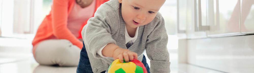 - Turn your living room into a playground. Place pillows, cushions or boxes on the floor for baby to navigate around. Play peek-a-boo for some giggles, and encourage them to keep moving by leading the way through the maze and placing toys just out of reach.